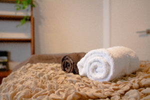 お着替えなしでふかふかソファーにゆったりと寝ながら施術します。